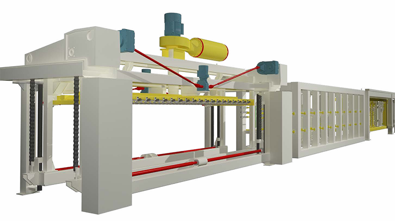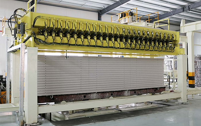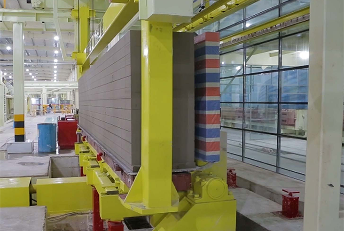 切割機(jī)組是加氣板材生產(chǎn)線的核心設(shè)備,用于切割不同尺寸的坯體,滿足超精確砌塊和板材的切割精度要求,生產(chǎn)板材時配合板材進(jìn)給刮刀,調(diào)節(jié)側(cè)面切割機(jī)的刮刀行程,可以滿足不同尺寸制品的混合切割。