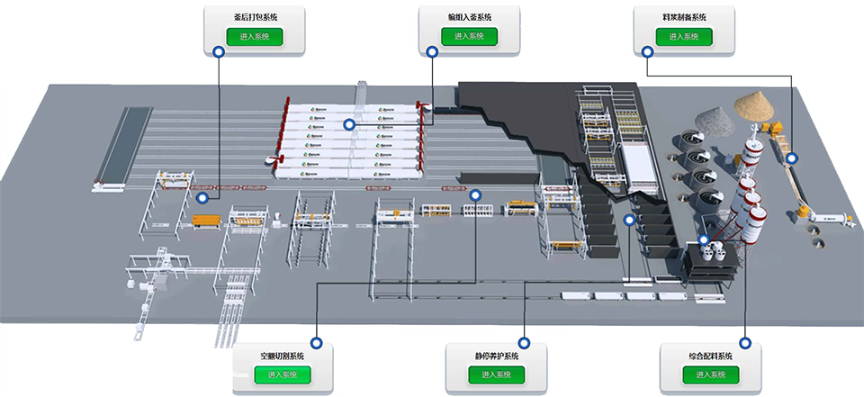 料漿、膠結(jié)料、石膏和鋁粉都分別通過相應(yīng)自動計量稱計量,后在攪拌機(jī)內(nèi)高速攪拌,澆注到模箱后進(jìn)行氣泡梳理。整個體系由 PLC 系統(tǒng)進(jìn)行自動控制,保證工序的精確和高效。